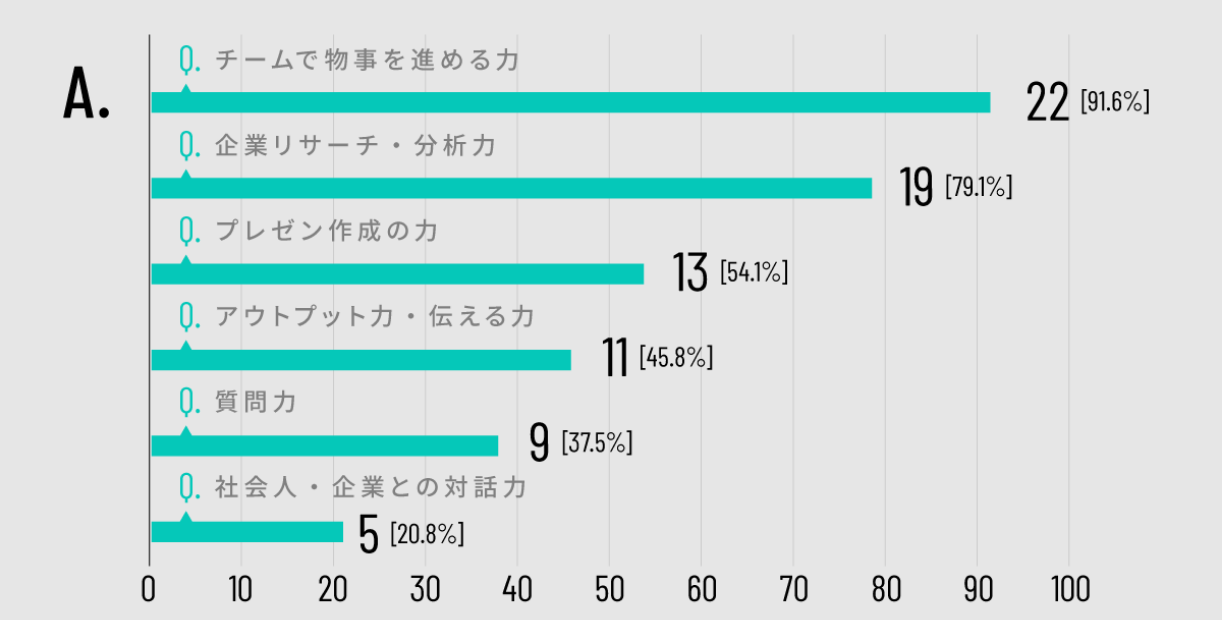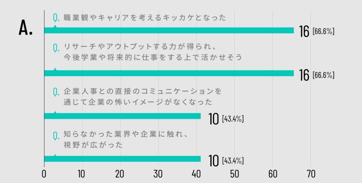 - Q.プロジェクト全体を通じて・また早期に企業と直接接点を 持てたことで、今後皆さんにとってどんな点で 役に立ちそうか(複数回答可)