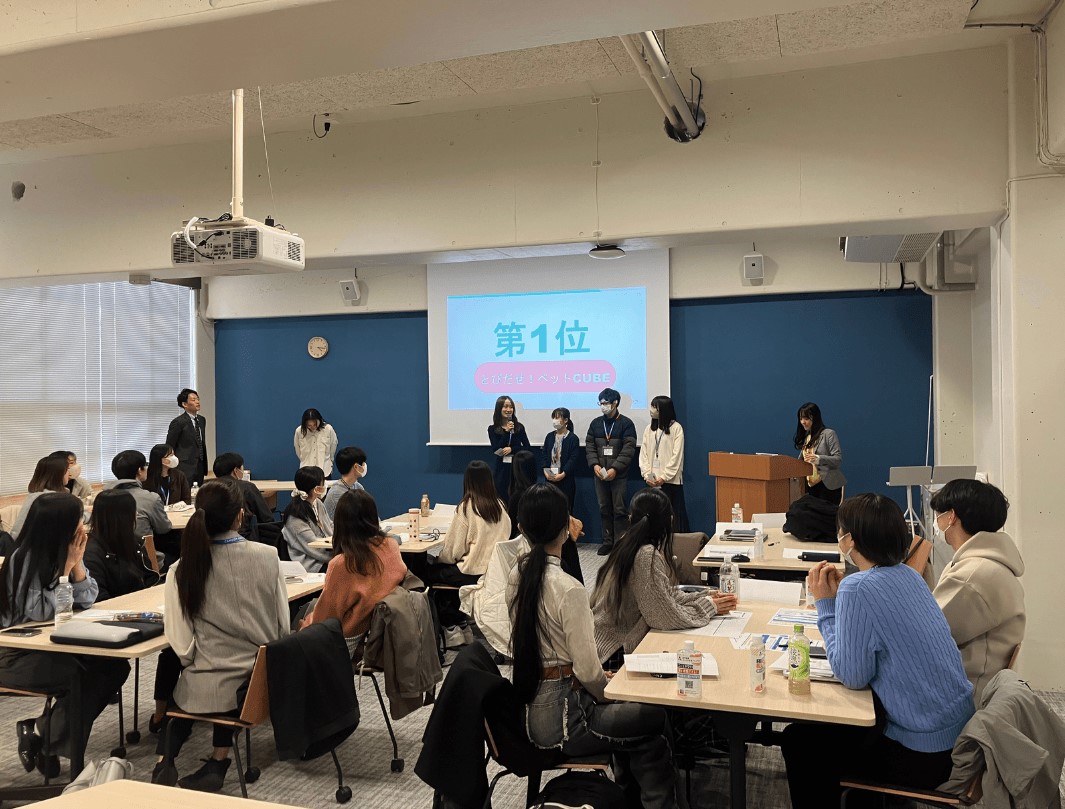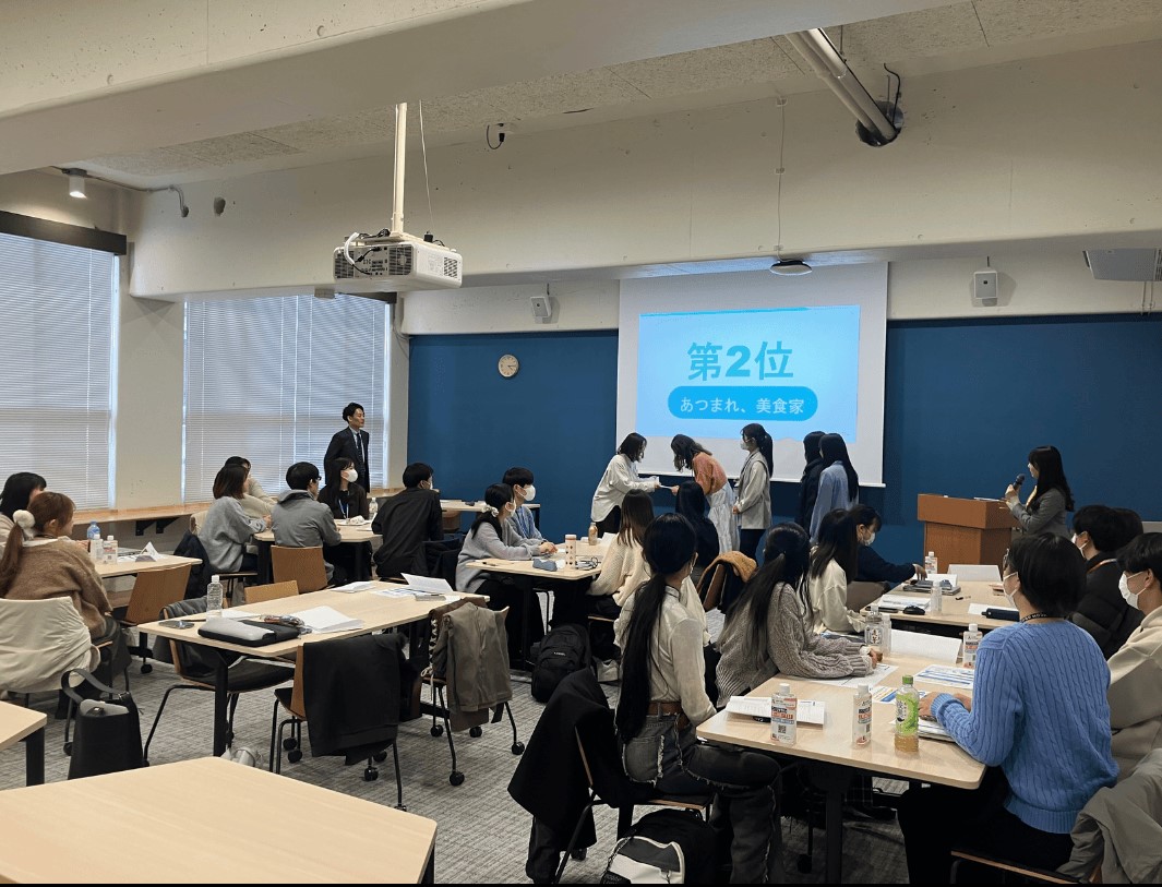プレゼンテーションの準備・発表に向けて、企業リサーチ、インタビューやプレゼンテーションなどのレクチャーの機会があったことや、企業の人事担当者へのインタビューを通じて自分たちの知りたいことを直接聞けたことなど、インプット面の充実がその理由に挙げられると思います。参加者全員がプレゼンテーションの内容を評価し優勝チームを決定する、というプロセスも納得感・満足感に繋がったのではないでしょうか。