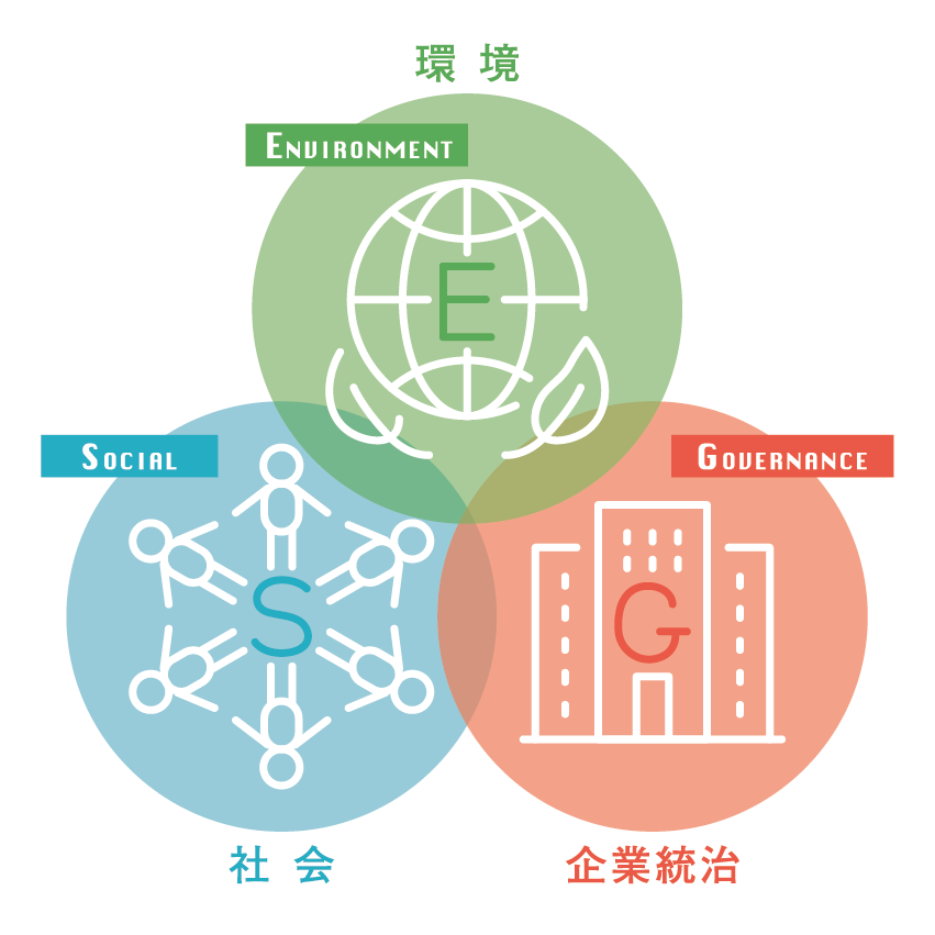 “ESG”とは、環境(Environment)、社会(Social)、企業統治(Governance)の頭文字をとったもの。