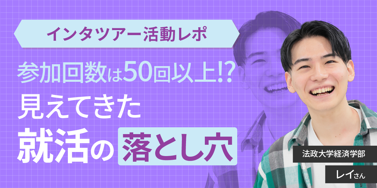 レイさん:きっかけは友人からのすすめでした。僕は三年の5月くらいから就職活動を始めたんだけど、アルバイトとの両立が難しくて……。そんなときに友人から「企業の情報収集とアルバイトをどっちもできるサービスがあるよ」と紹介を受けて、インタツアーを始めました。