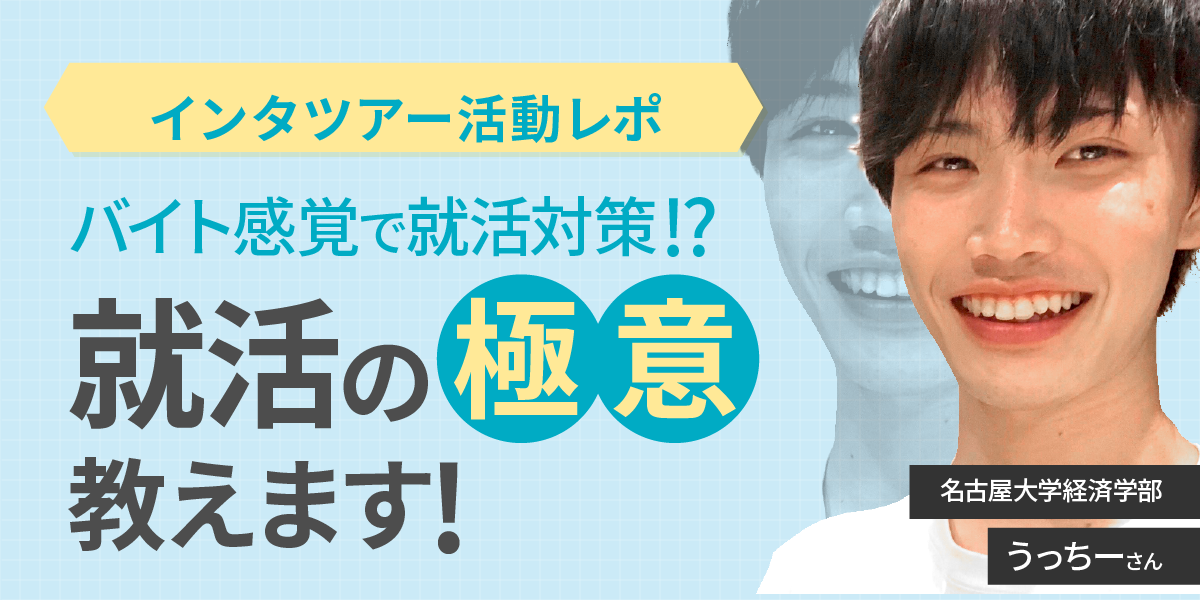 うっちー:インタツアーでは企業の情報を得られると同時に、社会人と関わる機会を多く得られます。企業研究の仕方が分からない人や、面接に不安を覚えている人は、ぜひ一度インタツアーに参加をしてみてください!インタツアーでの経験は、あなたの就職活動の糧になると思います。