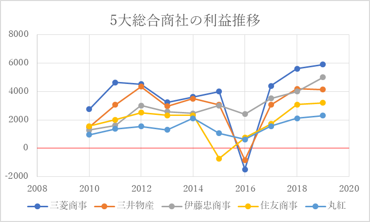 ③5大総合商社とその他大手商社「双日、豊田通商、兼松」の比較