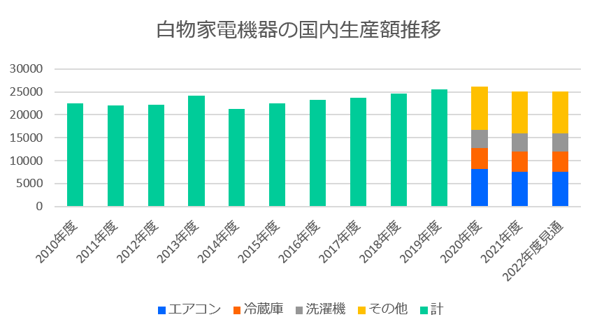 ただ、白物・生活家電の国内需要は買替需要が主体となっている為、コロナ後の出荷額は頭打ちになると予測されています。