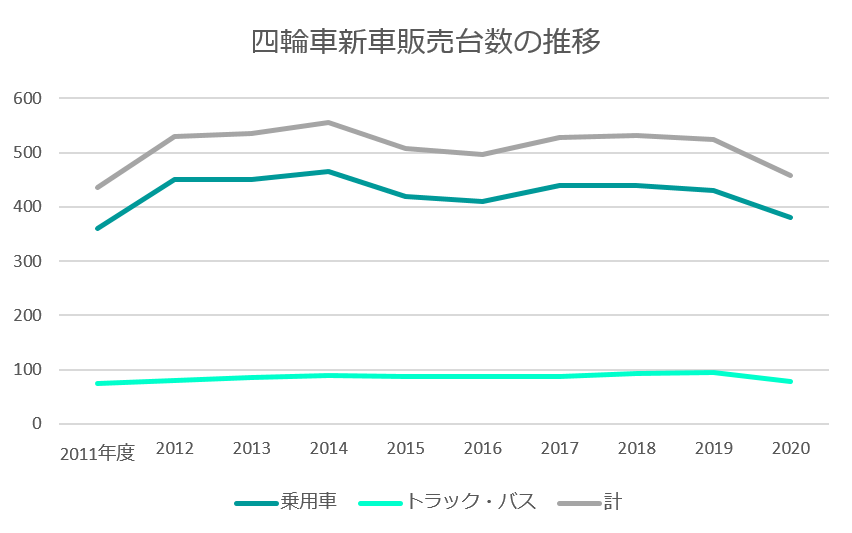 ただ新車販売台数は減少傾向にあり頭打ちの状態になっています。