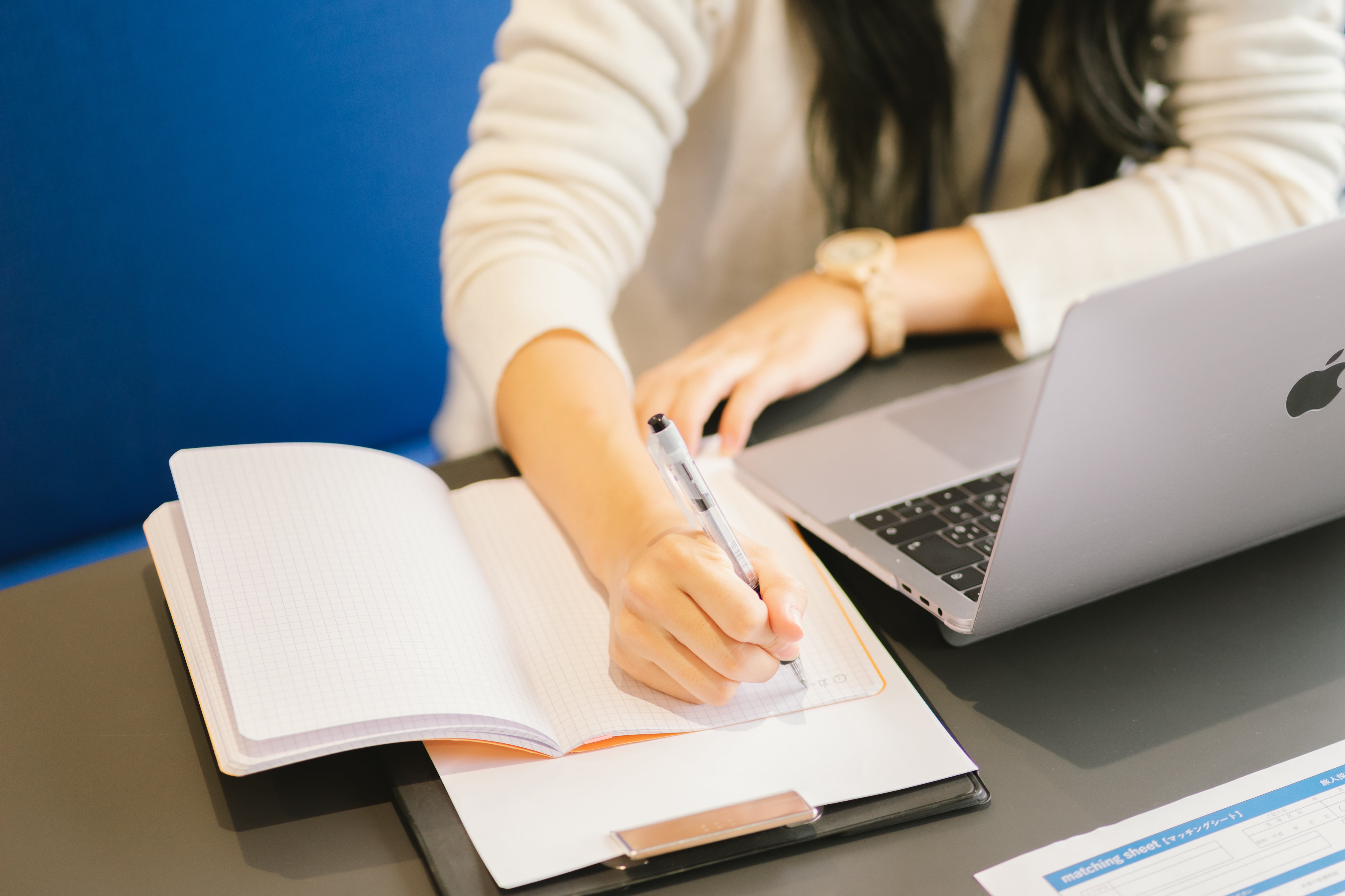 最近では対面形式での選考が増えており、会場でパソコンを出してメモを取ることが難しいため、メモできるノートは少なくとも1冊用意しておくようにしましょう。